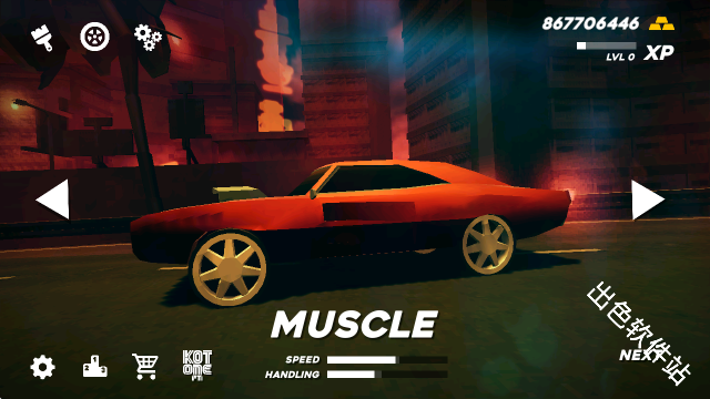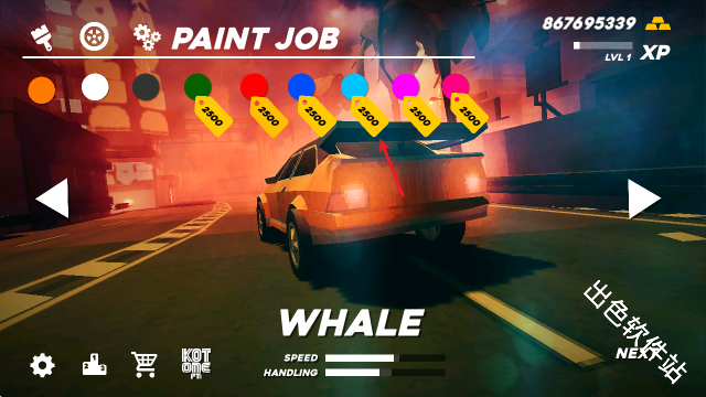 1.游戏开局的第一步就是选择自己喜欢的车进入赛道,通过左右按钮选择好车辆之后点击右下角的Next。