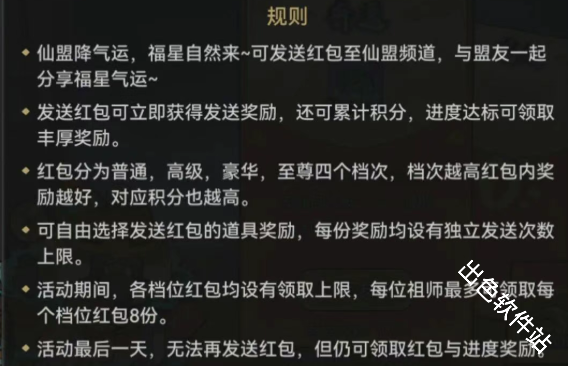 最强祖师即将开启全新庆典活动“仙盟福星”,本次活动算是祖师版的发红包,不再是纯粹的抽奖了,大佬既能发红包获得资源,还能让盟众也一起获得分润,下面带来仙盟福星活动详细指南。