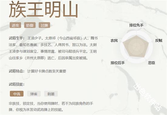 三国杀OL最近上线了新武将“族王明山”,其在游戏内设定为3体力3技能,特点是利用一技能打伤害,二技能捡牌,然后三技能刷新1、2效果,这里带来族王明山全方位分析,朋友们来了解一下吧。