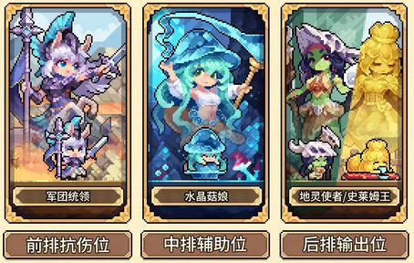 该队伍中,军团统领可作为前排抗伤角色承担大量伤害且其技能也是拉条,与水晶菇娘能大幅提升释放技能频率。剩下的输出位可视自身情况搭配地灵使者或史莱姆王等有强力技能输出的角色。
