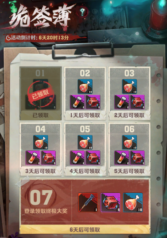 七天总计获取:枪皮*1+骰子(小游戏道具)*35+焕新试剂*10+体力*70+头像框*1。