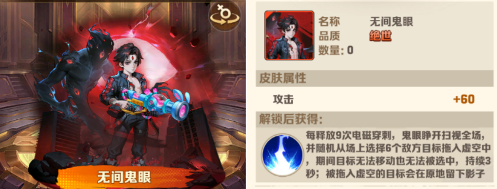 五代电皮(无间鬼眼):确定可以控制二次狂暴boss,一星冷却要长达5分钟,整体效果考量,实用性就不是特别高。即便将其升星至四星,所需时间也仍需3分钟,CD时间实在过长。普通玩家就不建议,对于后期控制手段多的大佬玩家,也许是一个不错的补充。