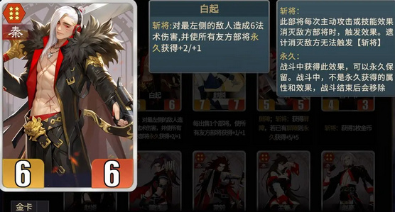 2.白起只会射最左边的部将,并且一轮斩将打完之后,才会触发其他效果如妖的召唤(突袭除外,突袭随时插队)。