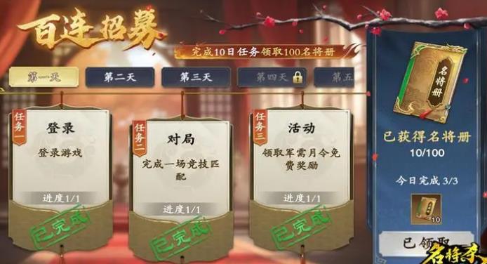 为庆祝游戏测试的开启,《名将杀》为玩家们准备了重磅开服福利!连续登录7天,每日可直接领取一名强力武将;通过参与对战,还能解锁八大专属武将,极大丰富战术选择;登录游戏更能免费领取100连抽,助力玩家快速获取自己心仪的武将!