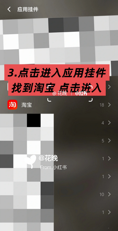 3.点击进入应用挂件,找到淘宝再点击进入;