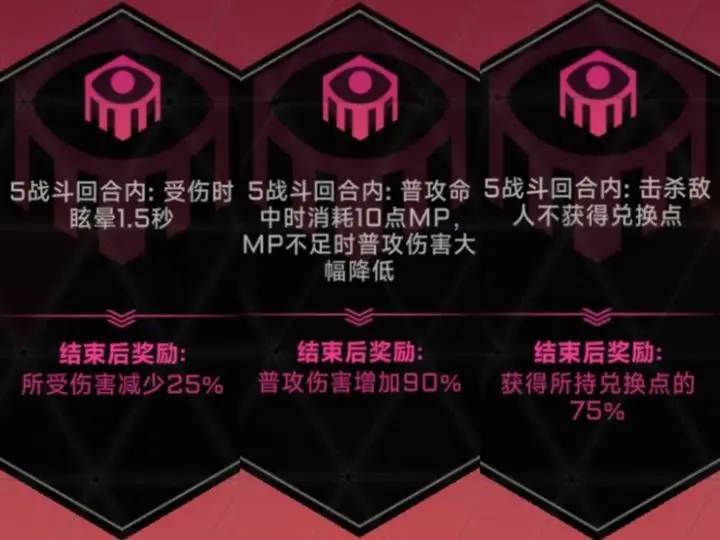 兑换点增1.75倍,开局前买无伤奖励和速通奖励,结晶带上开局兑换点和无伤兑换点,2-1拿到黑市兑换点增伤,3-1拿到契约打折券,4-1拿到考验兑换点增倍。格子优先潜能,然后兑换点,事件有几个给300的兑换点也可以进,策略拿几个有用的剩下见了就卖钱,3-1前最好不进商店,潜能靠潜能格和高级战斗蹭,能拿到几个关键潜能即可。拿到打折券后一个商店凹两次打折券(刷新仅耗70且比三次好凹)最后来到阿尔法空间的时候手上差不多有6000兑换点,黑市效果合计1200增伤,远超完美屠戮(完美屠戮2-1拿到500增伤左右)