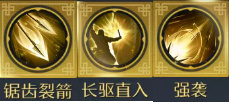 实用的武力技能,优先考虑能上负面[强袭]和伤害最高的[锯齿烈箭],[长驱直入]功能单一,可替代性高